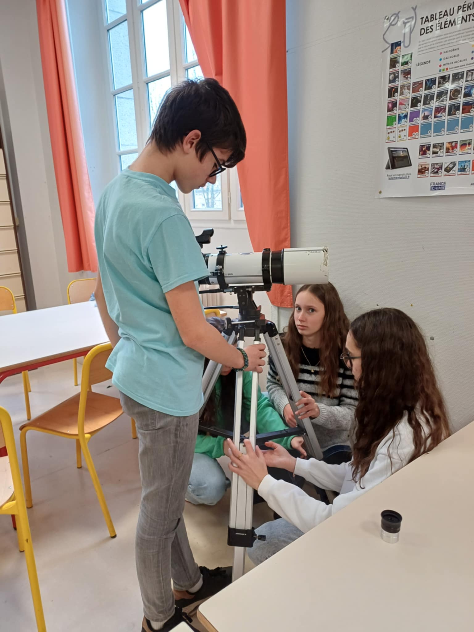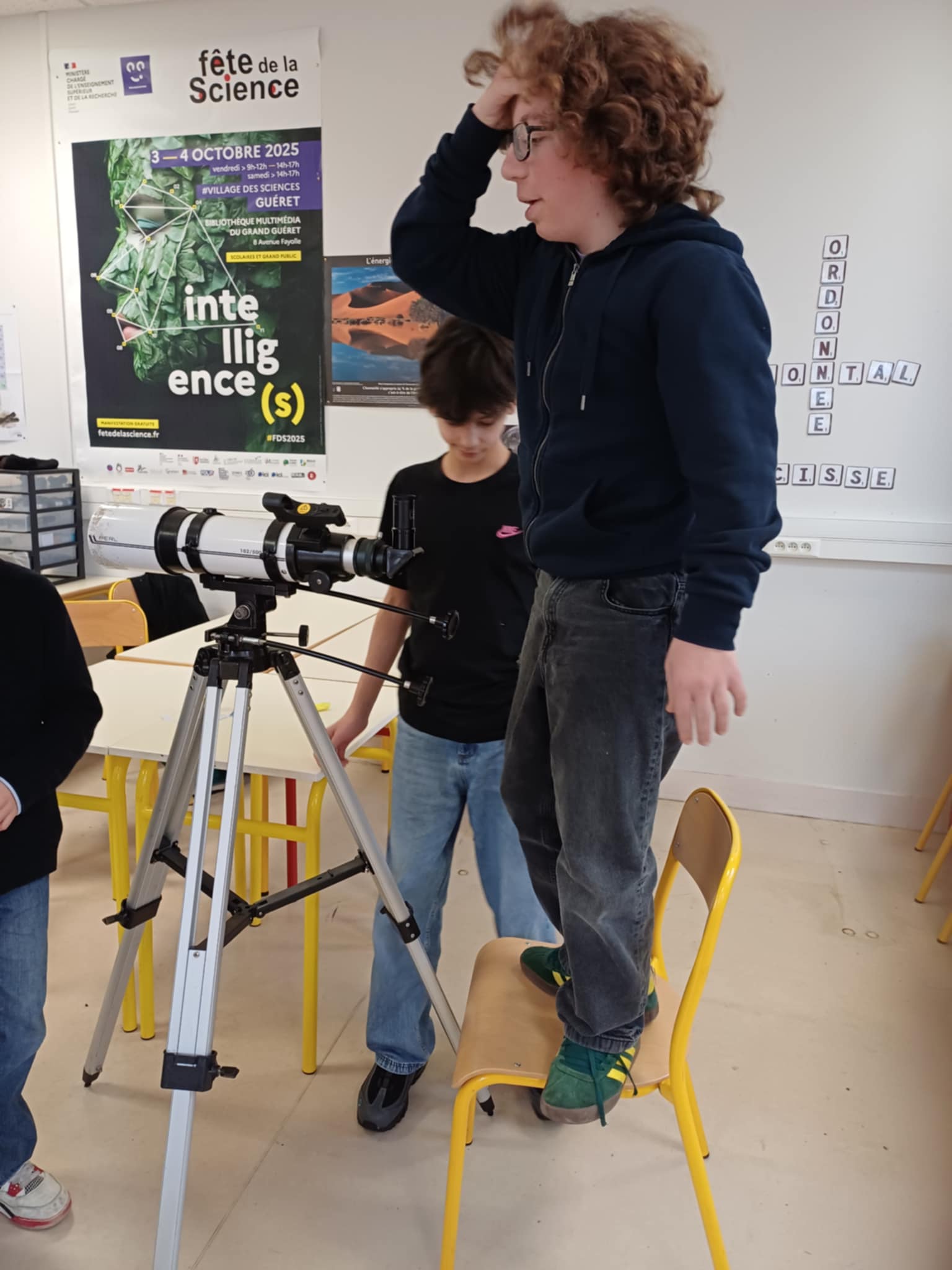 Jeudi 4 décembre 2025, les élèves du Club Sciences ont découvert les instruments d'astronomie ( lunette astronomique, télescope, Dobson).